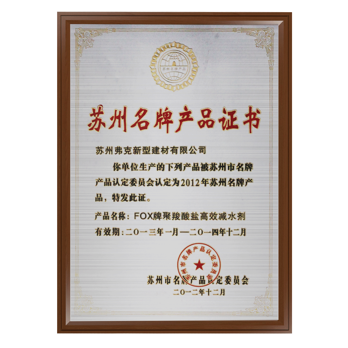 蘇州名牌產(chǎn)品證書
