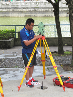 本次比賽由團(tuán)委書記趙廷儉擔(dān)任領(lǐng)隊(duì),航遙院吳國盼出任裁判,航遙院郭洪利和胡慶豐、濟(jì)南院王元陸、太原院黃原春四名選手參加。在三天的比賽期間,選手們在酷熱的天氣里,與來自股份公司系統(tǒng)的22家單位共88名選手同場競技。每名選手在隊(duì)友的配合下完成高程控制測量、平面控制測量和道路放樣三個(gè)項(xiàng)目,并統(tǒng)一參加了測量基礎(chǔ)理論知識的考試。