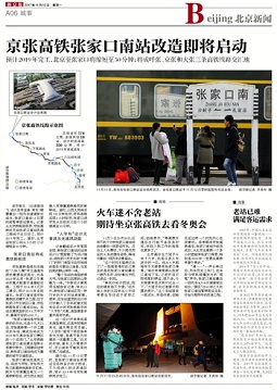 2017年11月12日零時,老張家口南站停止辦理業務,由中鐵設計集團承擔設計任務的京張高鐵終點站張家口南站即將開始建設,預計2019年完工。屆時,北京至張家口將從3小時12分縮短至50分鐘。這則消息引來北京衛視、河北衛視、新京報、北京新聞廣播等各級媒體競相報道。中鐵設計集團黨委宣傳部和建筑院參加了現場的采訪活動,建筑院馮越接受了部分媒體的采訪。