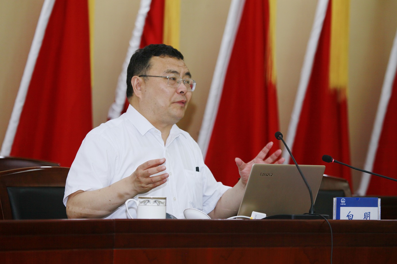 6月26日上午,中鐵設(shè)計(jì)集團(tuán)黨委舉行“不忘初心,牢記使命” 主題教育專題報(bào)告會(huì)。邀請(qǐng)商務(wù)部國際貿(mào)易經(jīng)濟(jì)合作研究院國際市場研究所副所長、經(jīng)濟(jì)學(xué)博士、博士生導(dǎo)師白明同志做了關(guān)于中美經(jīng)貿(mào)摩擦有關(guān)內(nèi)容的專題輔導(dǎo)報(bào)告。集團(tuán)黨委副書記、主題教育工作領(lǐng)導(dǎo)小組副組長吳俊誠主持報(bào)告會(huì)。集團(tuán)公司黨委書記、董事長李壽兵,總經(jīng)理王洪宇,其他領(lǐng)導(dǎo)班子成員及高管出席報(bào)告會(huì)。本部機(jī)關(guān)各部門、各生產(chǎn)單位副處以上領(lǐng)導(dǎo)干部,紀(jì)檢監(jiān)察專兼職干部共計(jì)130余人參加專題報(bào)告會(huì)。