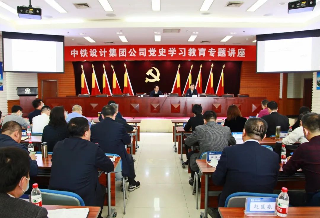 在全黨全公司深入推動黨史學習教育走向縱深之際,根據集團公司黨委黨史學習教育工作安排,2021年4月18日,集團公司在1301報告廳舉辦黨史學習教育專題講座,參加專題講座的人員有:集團公司領導班子成員及高管;副處級及以上領導干部;各基層單位黨群部部長、黨支部書記、工會各分會工會主席、各級團組織負責人。此外在本部1306會議室,濟南、鄭州、太原、廣州、總部基地設視頻分會場,共計200余人參加學習,會議由黨委書記、董事長王洪宇主持。