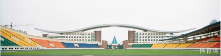 總占地面積31000m2,國際比賽標準田徑、足球場,觀眾看臺座椅數14760座,附屬房屋建筑面積5227.43m2; 看臺雨篷最大懸挑長度14m。