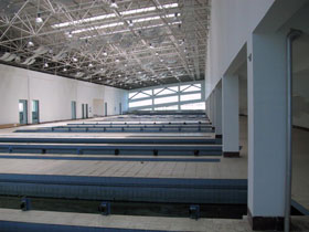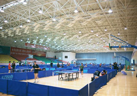 建筑面積:7500m2,館內4個籃球場,130人室內蕩槳訓練館;最大跨度46.8m。