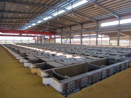 項目位于剛果民主共和國加丹加省,中鐵咨詢主要負責新建萃取-電積生產線的施工圖設計任務,設計年產陰極銅25000t/a,設計采用了三萃一反萃取、不溶陽極電解生產陰極銅的冶煉工藝。項目于2012年完成“剛果(金)綠紗銅鈷礦采選冶工程-銅萃取電積車間工程設計”的施工圖設計工作,2013年實現一次試生產成功,產出第一批高純陰極銅,并順利達到了設計產能。