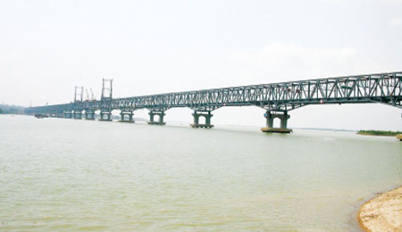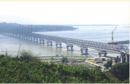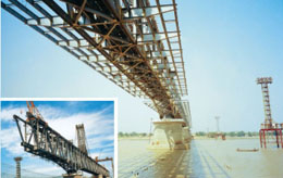 緬甸毛淡棉大橋-公鐵兩用大橋。該橋公路、鐵路在同一平面,主橋為7聯共21跨連續鋼桁梁,全長2345.6米,采用索塔懸臂拼裝法施工。