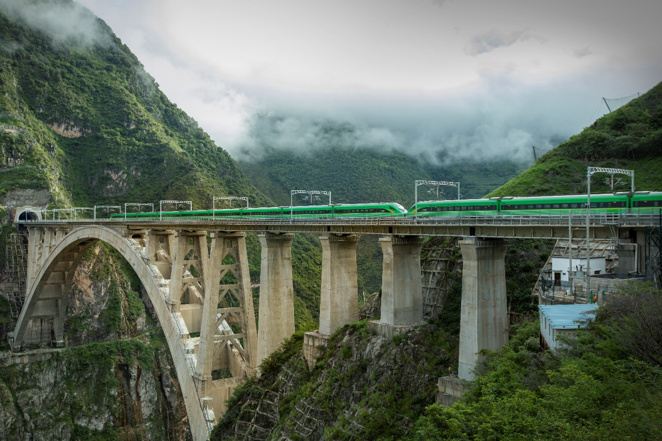 大瑞鐵路瀾滄江特大橋,位于云南省大理州,跨越瀾滄江V形深溝峽谷連接大理州和保山市,是新建大瑞鐵路大保段的“咽喉”工程。大瑞鐵路大保段為時速160公里客貨共線鐵路,采用雙線有砟軌道,2022年7月建成通車。