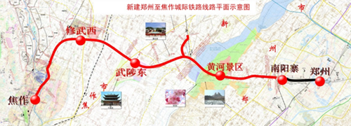 新建鄭州至焦作城際鐵路是中原城市群客運系統(tǒng)的建設(shè)項目之一,正線全長約77.8km,其中利用既有京廣線9.65km,新建線路68.15km,設(shè)計時速200km/h。全線設(shè)鄭州、南陽寨、黃河景區(qū)、武陟、修武、焦作6個車站。